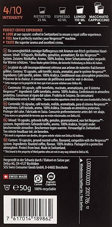 Café Royal Hazelnut Edition Nespresso (R)* 100 Compatible Aluminum Coffee Pods, Strength 4/10, 10x10 Pods