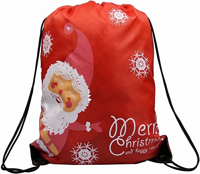 Polyester Santa sackpack bag is the perfect size and affordable, perfect promotional bag for all your custom needs such as Festive, schools, party favors, and gyms can all benefit from these trick and treat bags.