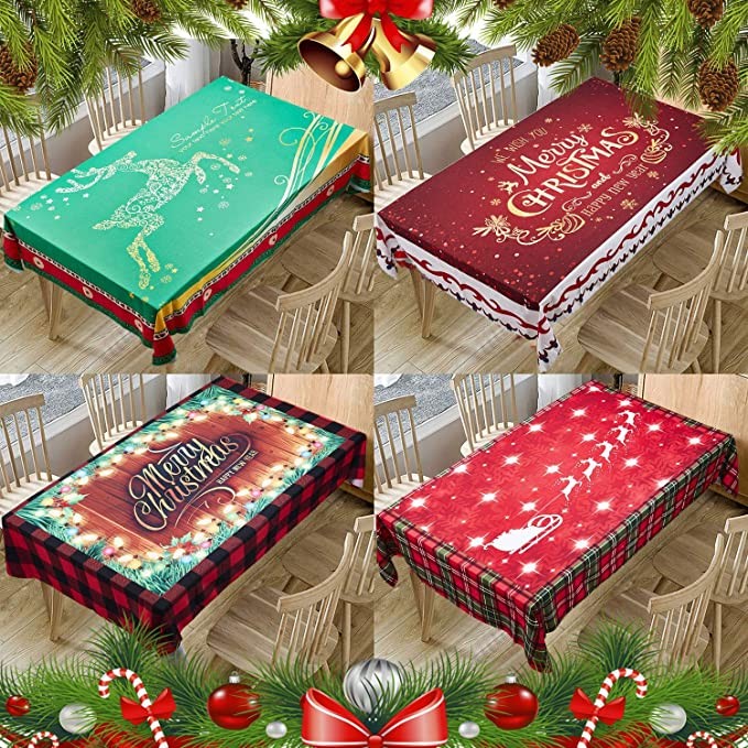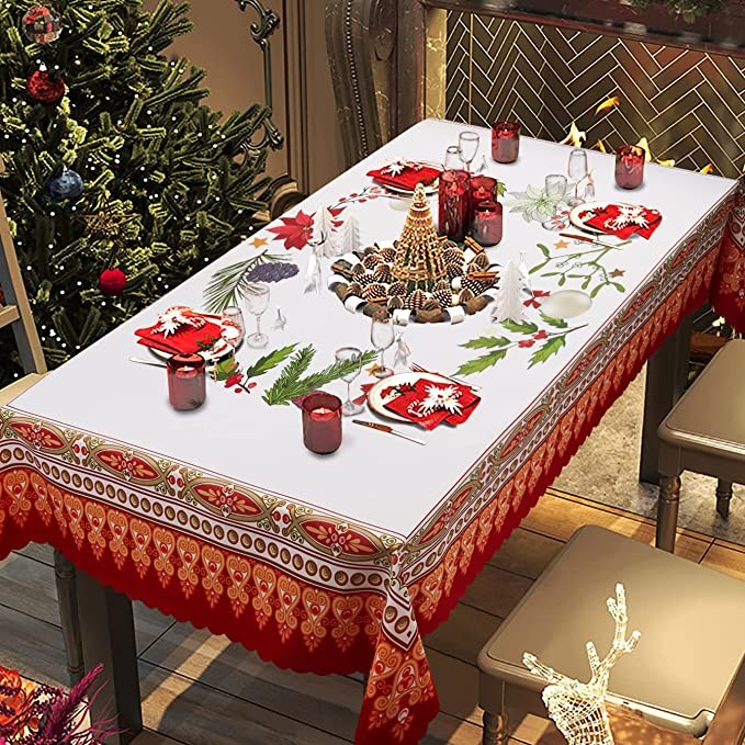 Give your dining table a stylish appearance and protect it from scratches and stains with this holiday fabric tablecloths with creative patterns. Fashioned from polyester look fabric in a wide variety colors and cute patterns, oil-proof, stain proof.This cloth will complement your table and add festival and modern color to your meal times.