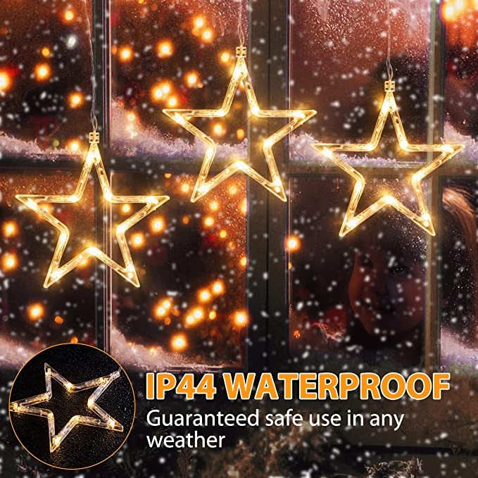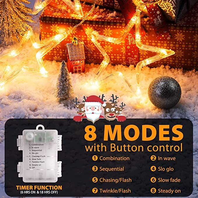 GlobaLink Christmas Star Window Lights, 3Pack 30LEDs Battery Powered Timer Window Star Hanging Lights, Waterproof Backdrop String Lights with 8 Modes for Indoor Outdoor Home Bedroom Party - Warm White