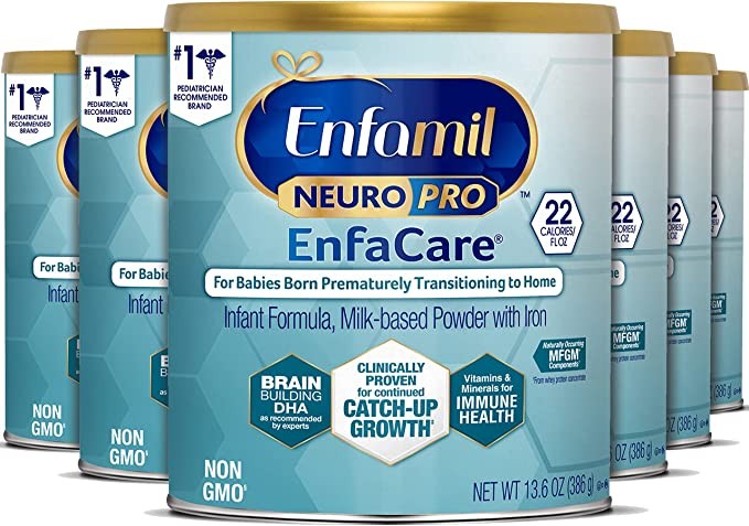 meadjohnson Enfamil NeuroPro EnfaCare Preterm Infant Milk Powder, Can, 12.8 oz, 363 g (6 Cans), Contains Iron, MFGM, Omega 3 DHA, Prebiotics for Growth Support (May Pack)
