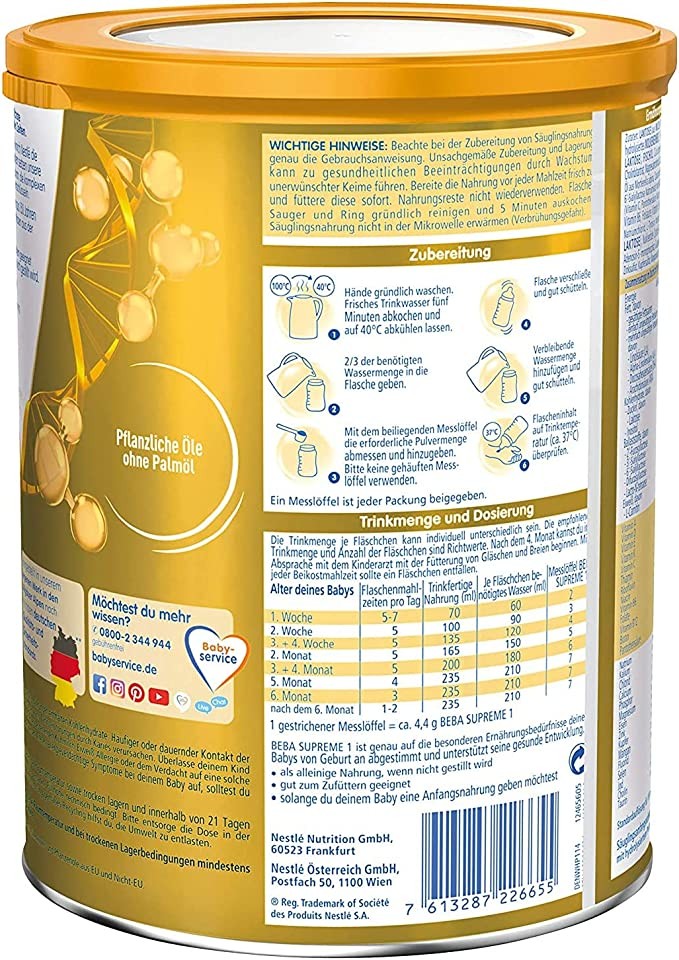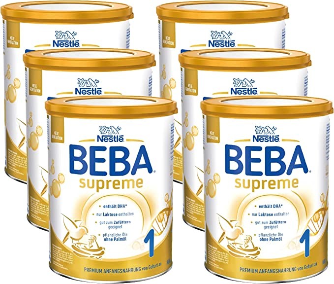 Nestlé BEBA SUPREME 1st stage milk powder: suitable for newborns rich in Omega 3, 6 cans (6 x 800g)