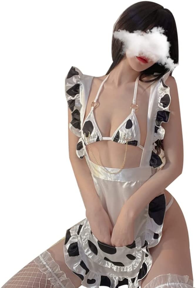Women Sexy Maid Cosplay Lingerie Furry Milk Cow Costume Kawaii Anime Bikini Set Mini Leopard Bra and Panty Set