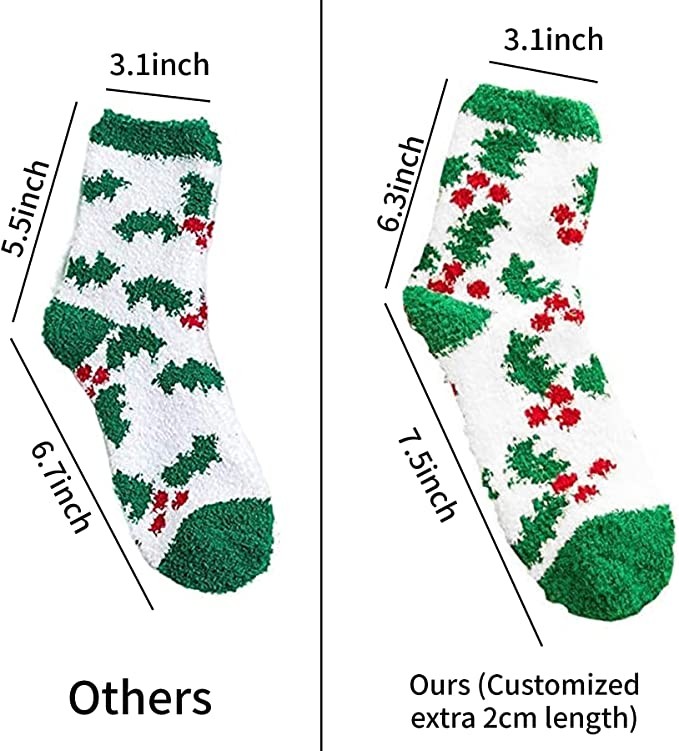 6 Pairs Adult Christmas Holiday Socks Warm Winter Cozy Socks Fuzzy Socks With Plus Size And Anti-Slip Bottom