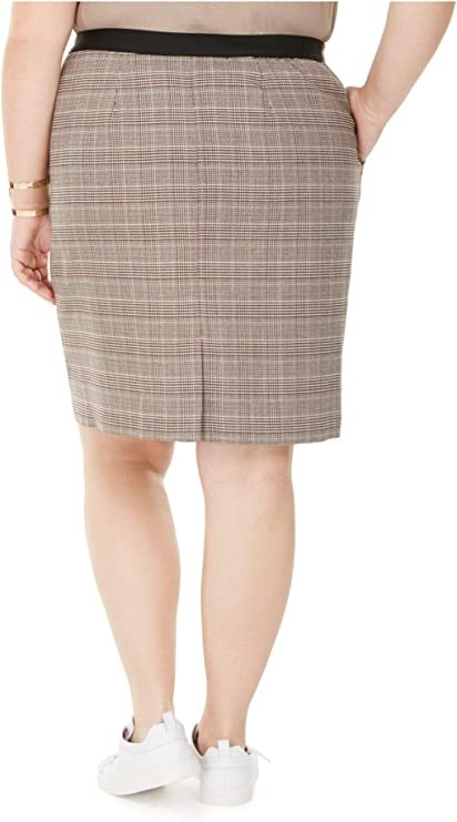 Bar III Women's Beige Zip Plaid Knee-Length Pencil Skirt Size 24W