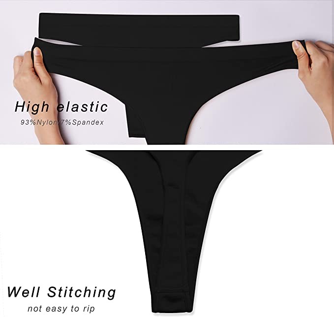 • Great Value 3-Pack and 6-Pack: Available in 3-Pack or 6 Classic Colors. Save money and beautify your look with our Women's 3-Pack or 6-Pack Seamless Invisible Sexy Sports Thong Panties, because just one breathable panty isn't enough! We put effort into ensuring the quality of every piece of underwear , So our seamless invisible breathable stretch thong panties are well sewn in every detail and won't tear easily even after high intensity exercise.