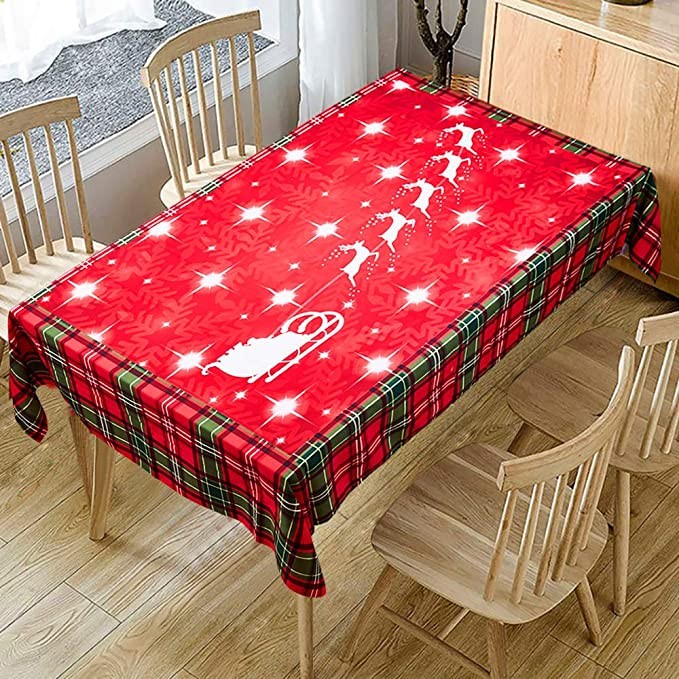 Give your dining table a stylish appearance and protect it from scratches and stains with this holiday fabric tablecloths with creative patterns. Fashioned from polyester look fabric in a wide variety colors and cute patterns, oil-proof, stain proof.This cloth will complement your table and add festival and modern color to your meal times.