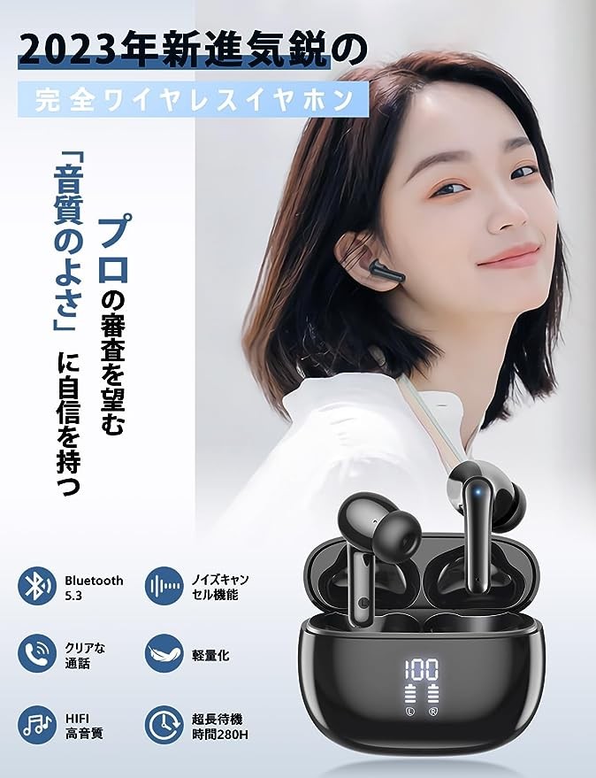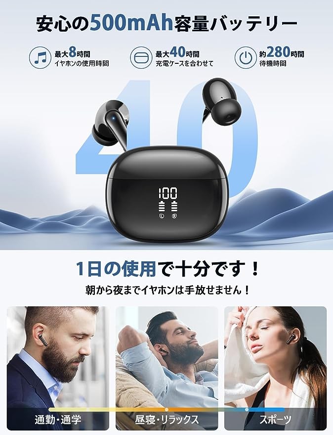 [First sale in the summer of 2023 Bluetooth headphones] Wireless headphones Bluetooth headphones JGUG digital LED display double-ear ENC noise reduction long-term continuous playback wireless headphones Bluetooth hot-selling automatic pairing fully wireless headphones Bluetooth headphones Hi-Fi sound quality touch control Typ e-C charging IPX7 waterproof single ear/double ear left and right separation small/lightly suitable for iPhone/Android business/ZOOM/WEB conference/remote office/work/school/sports music/game Japanese instruction manual
