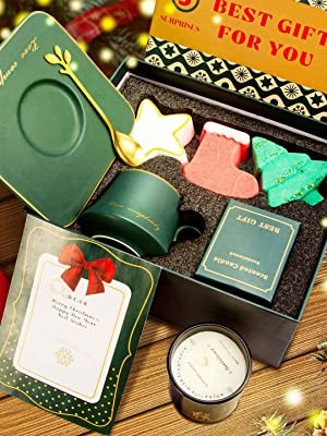 Gifts for Women Christmas, Christmas Bath Bombs Coffee Mug Candles Gift Box, Relaxing Christmas Spa Gift Baskets for Women, Stocking Stuffers for Women Unique, Girlfriend Wife Mom Gifts for Christmas
