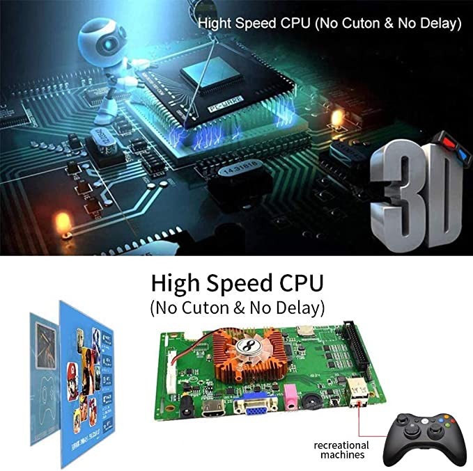 【New Vision 1280 x 720 Full HD】This arcade game console can be connected to TV, computer, game console, projector to play games. High-definition graphics and excellent sound quality, good game control experience and stable performance. Easy to use, plug and play, with English manual. Top brand chips in gaming solutions, smooth picture display;