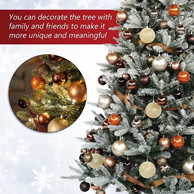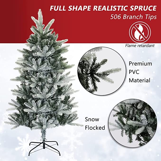 Kinder King 5FT Snow Flocked Artificial Christmas Tree, Premium Spruce Hinged Holiday Tree for Home, Office Decoration, 506Tips, Ornament Balls Included, Easy to Assemble, Foldable Metal Stand