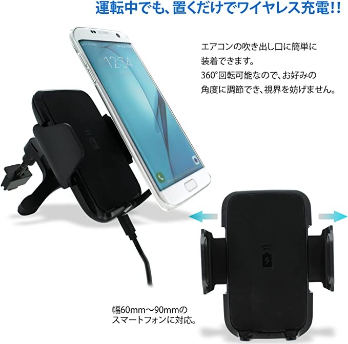 Whitenuts Smartphone Wireless Charger Car Holder comes with microUSB cable, which can be charged just by placing it Wireless Smartphone Holder Car Air Conditioner Outlet Simple installation 360 degree