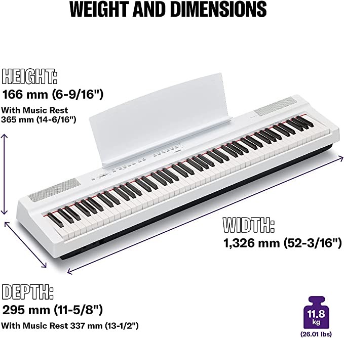 Yamaha Yamaha P-125WH Digital Piano, White - Compact digital piano design for perfect playability - Compatible with the app "Smart Pianist"